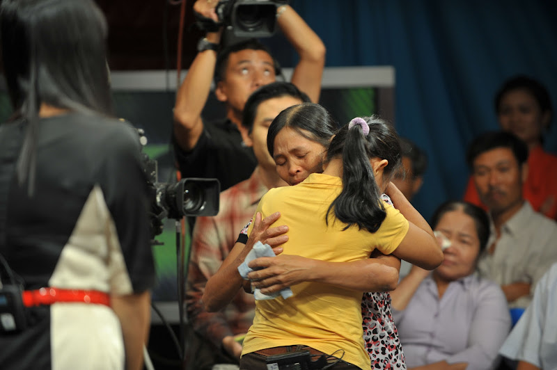 | Giây phút trùng phùng của gia đình chị Trang. Niềm hi vọng của bà mẹ sau gần 40 năm đã thành hiện thực – Ảnh: Bùi Vũ – Bảo Long |