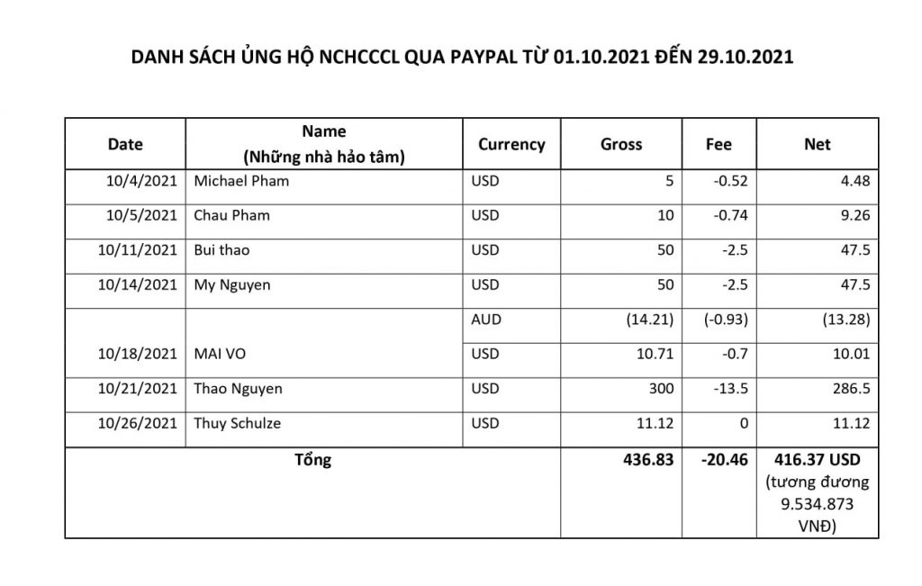 (Danh sách Quý Nhà Hảo tâm ủng hộ qua Quỹ Từ thiện của Báo Vietnamnet và Quý vị đang sống ở nước ngoài góp tay với NCHCCCL qua PayPal chúng tôi xin đăng kèm trong đường link Drive (an toàn) và trong file ảnh đính kèm dưới post này.)